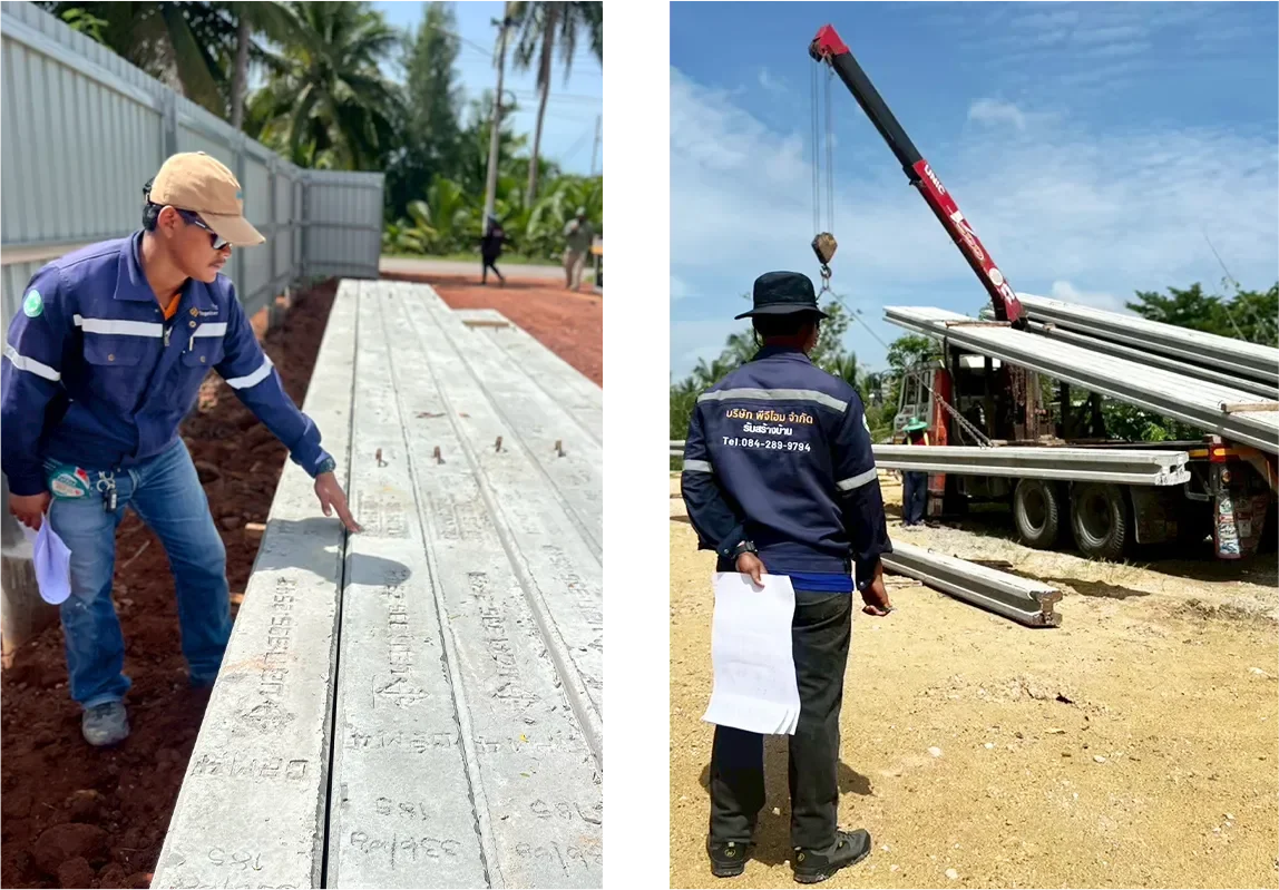 ตรวจรับเสาเข็ม เพื่อเช็คอายุเสาเข็มว่าพร้อมใช้งานหรือไม่ และสภาพเสาเข็มมีรอยแตกร้าวหรือไม่