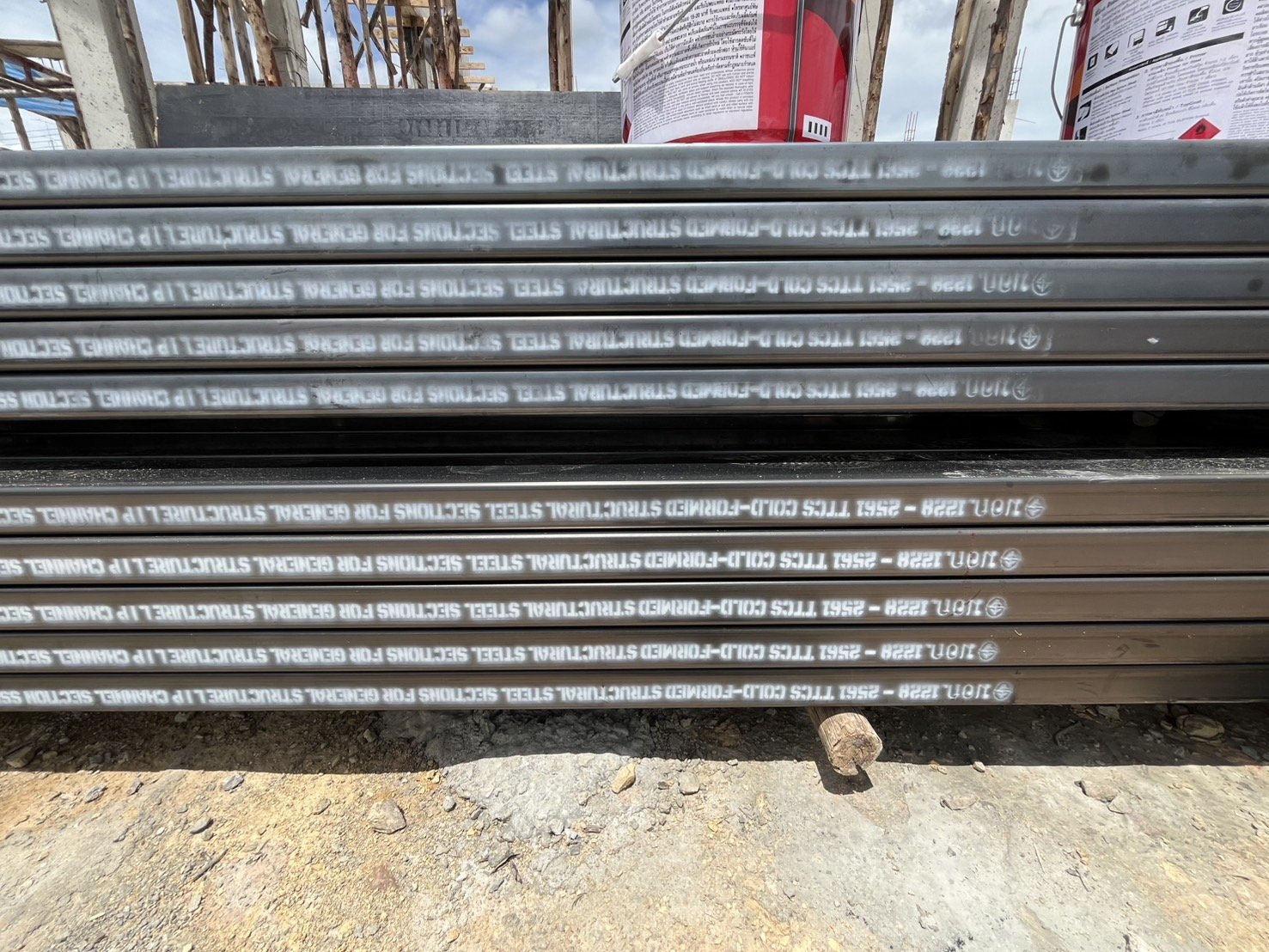 • เหล็กโครงหลังคาเหล็กรูปพรรณเป็นเหล็ก มอก. ทำสีกันสนิม TOA แบบชุบสีเหล็กในรางชุบสี ทำให้ได้สีกันสนิมที่หนากว่าการทาและการพ่น